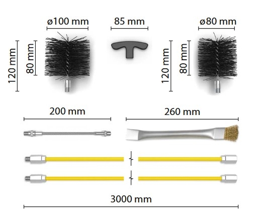 Universal chimney cleaning brush (diameter 40cm) + 6 sticks 1m (all 6m)