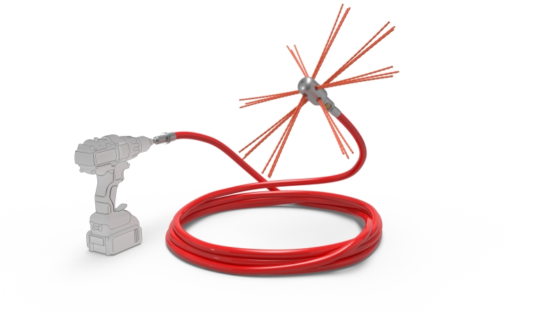 Употреба: Използването на ротационния комплект за почистване на комини е много лесно. Благодарение на невероятната гъвкавост на "жило"-то, четката може да мине през най-тесните отвори и това позволява да се почисти комина просто чрез промушване на четката през тръбата на печката / камината. Няма нужда да се качвате на покрива!