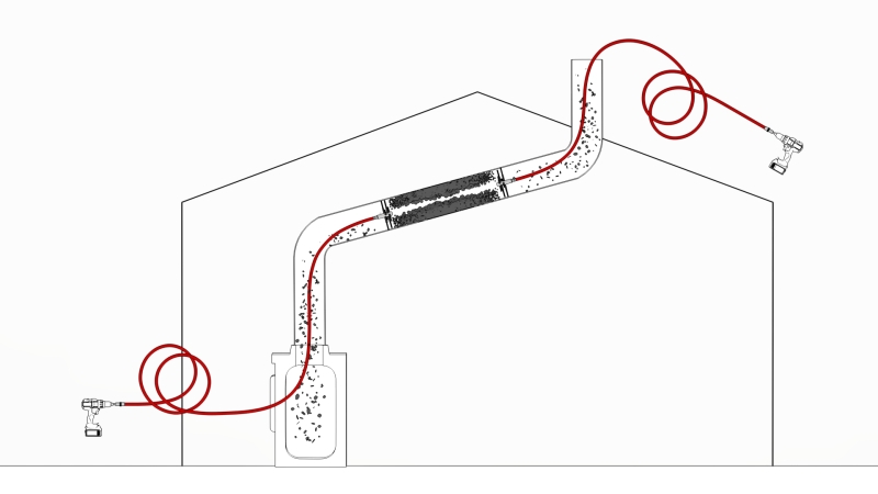 Ако коминът е напълно запушен, отстранете "на ръка" колкото може повече препятствия от комина, преди да използвате комплекта TORNADO COBRA.