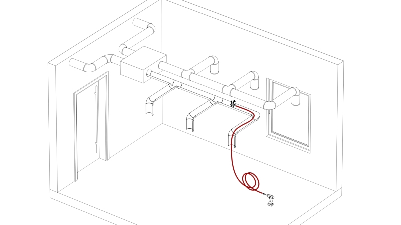 Отстранете регулиращата клапа (ако има такава), намираща се на връзката към комина от вашия отоплителен уред, както и всички други подвижни части на отоплителния уред. Моля, имайте предвид, че саждите са опасно вещество. Уверете се, че носите предпазни очила, респиратор и защитни ръкавици през целия процес на почистване, за да предпазите очите, кожата и дихателните си пътища от контакт със сажди. Не използвайте гумени ръкавици, тъй като те могат да залепнат за "жило"-то и да наранят китката ви.